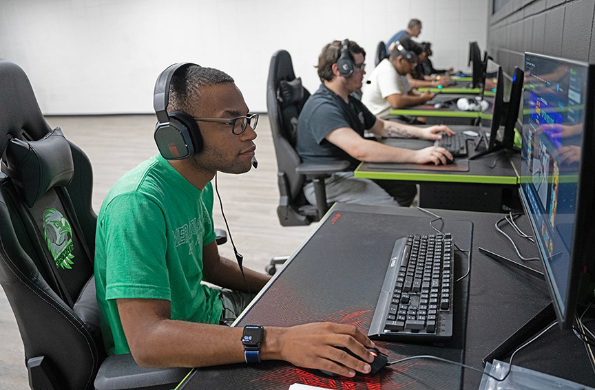 The glow of computer screens and the click of keyboards filled the room as students gathered for Meridian Community College’s esports interest meeting.