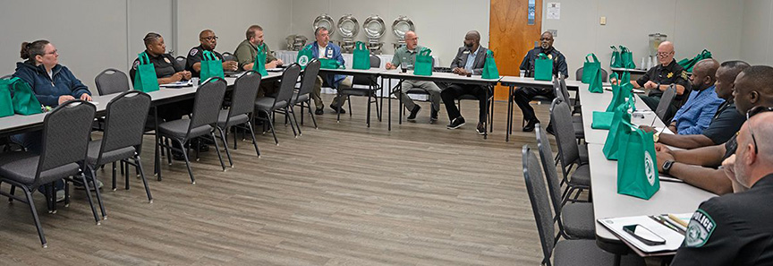 The gathering was part of the County Law Enforcement Advisory Roundtable, or CLEAR, a new monthly meeting that brings together agency heads from across the area, including the Meridian Police Department, Lauderdale County Sheriff’s Department, Mississippi State University, Meridian Public School District, local hospitals, the Town of Marion, and others.