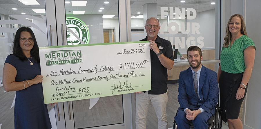 That’s what Meridian Community College Foundation gave to the College in support of students and programs on campus for the fiscal year 2025. Specifically, the $1,771,675.36 gift was earmarked for academic ($19,678.83), scholarships ($630,662.73), student services ($538,665.59), workforce ($125,421.60), nursing and health education ($37,196.61), and capital improvements ($420,050.00).