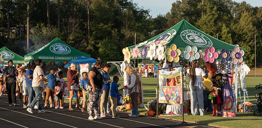 As the 2025 event wrapped up, Tobias sorted through his Halloween bucket filled with candy and prizes. Among the treats was a toothbrush, a treat from Meridian Community College’s Dental Hygiene students, who were among the campus programs and organizations represented at the event.