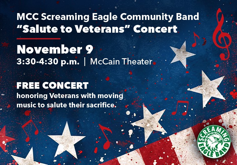 The Meridian Community College Screaming Eagle Community Band will present A Salute to Veterans on Sunday, Nov. 10, at 3:30 p.m. in the McCain Theater.