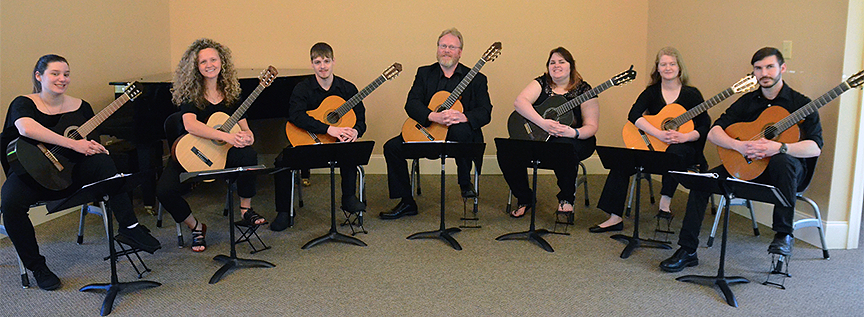 The Meridian Community College Guitar Ensemble is offered to give guitar students the opportunity to perform in a group setting. The repertoire includes music from the Renaissance to modern day. The guitar ensemble performs each spring at the MCC Student Guitar Recital as well as during the fall and spring semesters for events on the MCC campus, in the community and at statewide guitar festivals. The guitar ensemble meets on Mondays and Wednesdays at 2:00. Reading standard music notation in first position of the guitar is required. Music majors with guitar as their major instrument are required to enroll in guitar ensemble. Students who are not music majors may also enroll if they have successfully completed Classical Guitar I or with permission of the instructor. Instrumental performance scholarships are available for this group.
